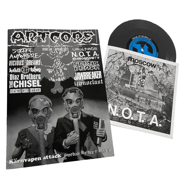 Upright Citizens 'Facts And Views' 7" EP on red vinyl w/ 12 page 7" booklet featuring UC's 1985 U.S. Tour Report and download code. Artcore Fanzine Issue #36 / 36 pages featuring: Green Beret / Crown Court / Hot Mass / Jaded Eyes / Shot! / Flicts / Natterers / Vaultage: Upright Citizens / Dag Nasty / Descendents / Vicious Circle / Shattered Faith / Anti-System / The Art of Chris Shary / Over 100 Reviews